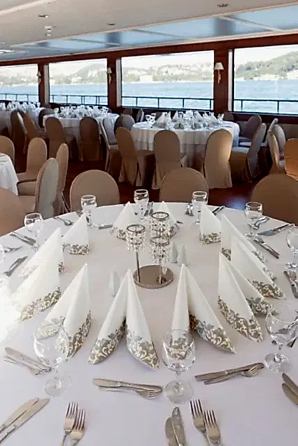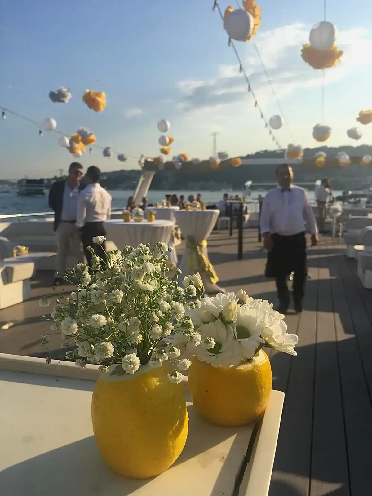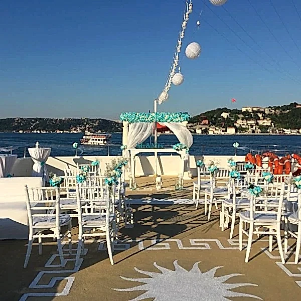As yacht-owners ourselves, we are intimately familiar with the needs of guests, logistics and practicalities. After years of working with many different yachts for weddings in Istanbul, we have since narrowed it down to a select-few luxury charter yachts that we feel can offer a reliable and professional service expected for a wedding. These carefully-selected and well-cared for luxury boats offer comfort, modern facilities and an attentive service for our valued guests. Additionally for your peace of mind, we can facilitate a viewing of your selected wedding boat prior to booking for those who wish. So you can rest assured that by booking with us, you will be getting one of the best possible boats in the city for a smooth event as well as one of the most beautiful wedding venues in Turkey.