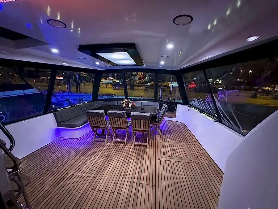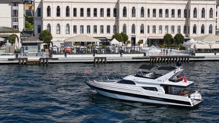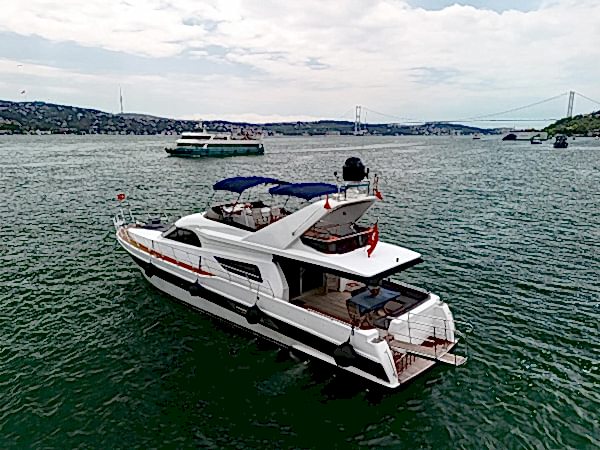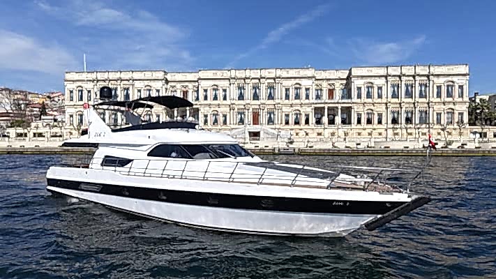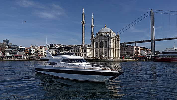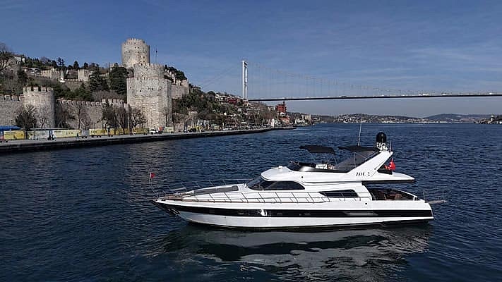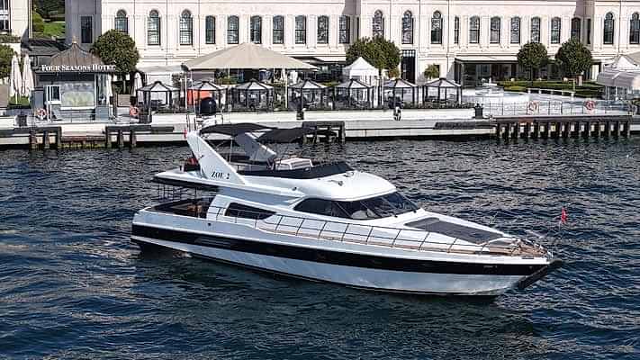 Capacità fino a 12 ospiti, Zoe Yacht lungo 17-metri/55-piedi a Istanbul pronto a portarti a scoprire con una crociera di lusso lo stretto sul Bosforo, il Corno d’Oro, le Isole Principi e il Mar di Marmara o il Mar Nero.
